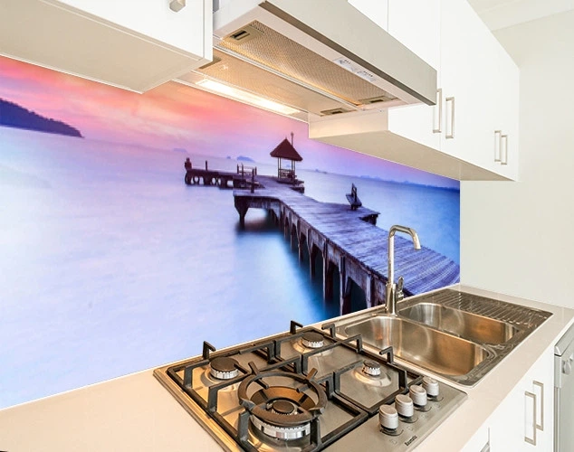 Панель на кухонний фартух під скло з причалом біля моря, на двосторонньому скотчі 68 х 305 см (ПЭТ3-sar211-6)