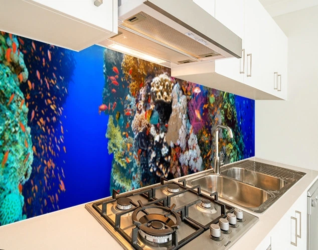 Панель кухонні, замінник скла з морським дном, з двостороннім скотчем 62 х 410 см, 1,2 мм (ПЭТ-san036)