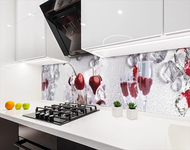Кухонна панель на стіну жорстка вишні з льодом і келихами, з двостороннім скотчем 62 х 410 см, 1,2 мм (ПЭТ-sed618)