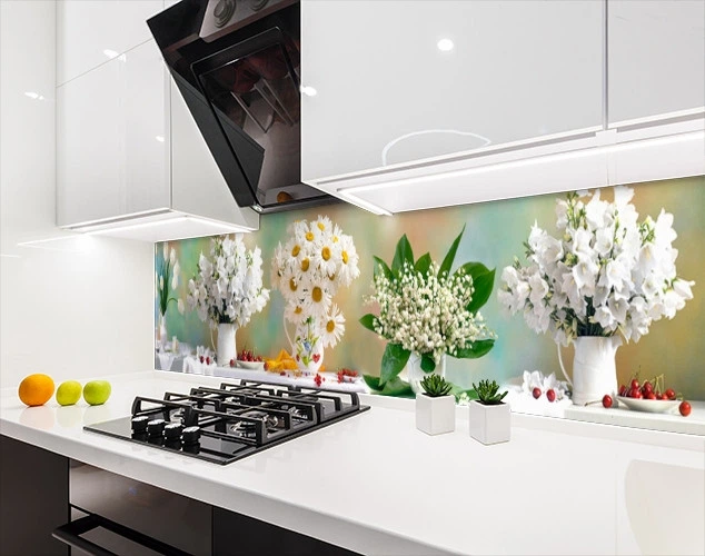 Кухонна панель на стіну жорстка квіти у вазах, з двостороннім скотчем 62 х 410 см, 1,2 мм (ПЭТ-sfl11750)