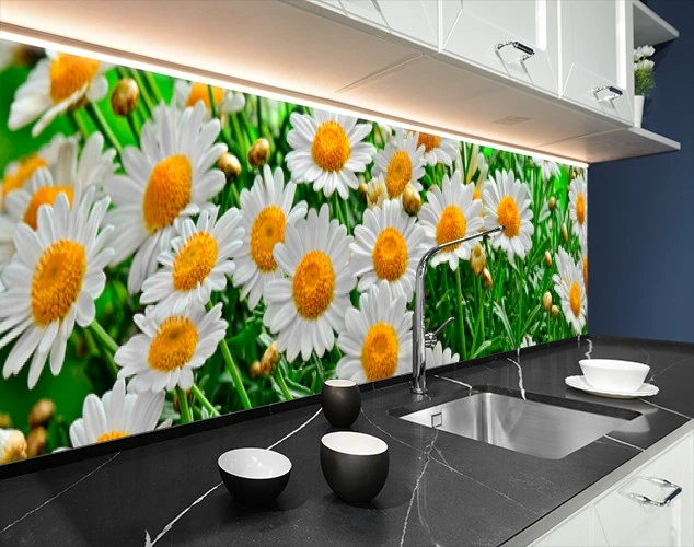 Панель кухонні, замінник скла ромашки в полі, з двостороннім скотчем 62 х 410 см, 1,2 мм (ПЭТ-sfl088)