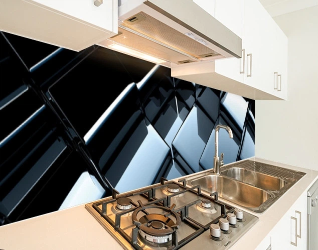 Кухонна плитка на кухонний фартух 3д куби дзеркальні, з двостороннім скотчем 62 х 410 см, 1,2 мм (ПЭТ-sab11061)