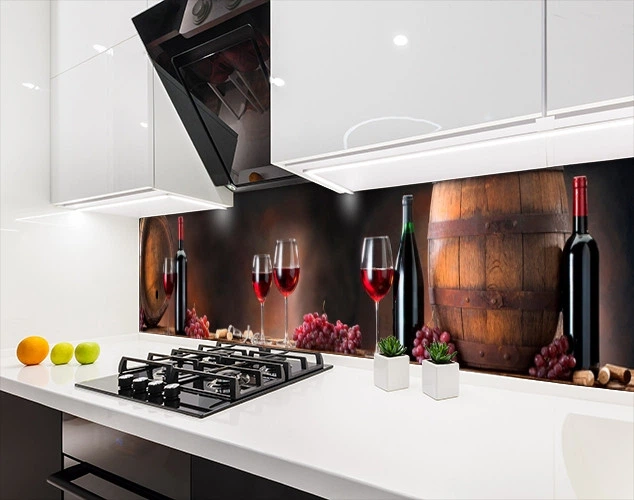 Панелі на кухонний фартух ПЕТ бочки з вином і келихи, з двостороннім скотчем 62 х 410 см, 1,2 мм (ПЭТ-sed118)