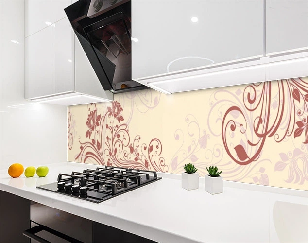 Кухонна панель на стіну жорстка квіти на бежевому тлі, з двостороннім скотчем 62 х 410 см, 1,2 мм (ПЭТ-sfl11691)