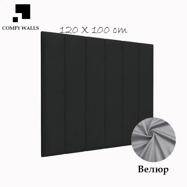 М'яке оксамитове узголів'я для ліжка з велюру 120*100*4см Чорний