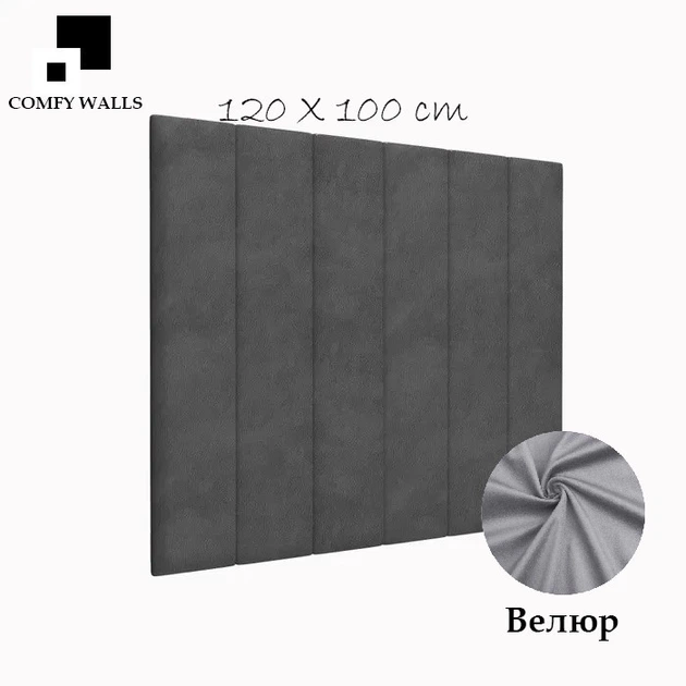 М'яке оксамитове узголів'я для ліжка з велюру 120*100*4см Темно-сірий