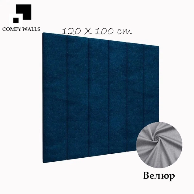 М'яке оксамитове узголів'я для ліжка з велюру 120*100*4см Синій