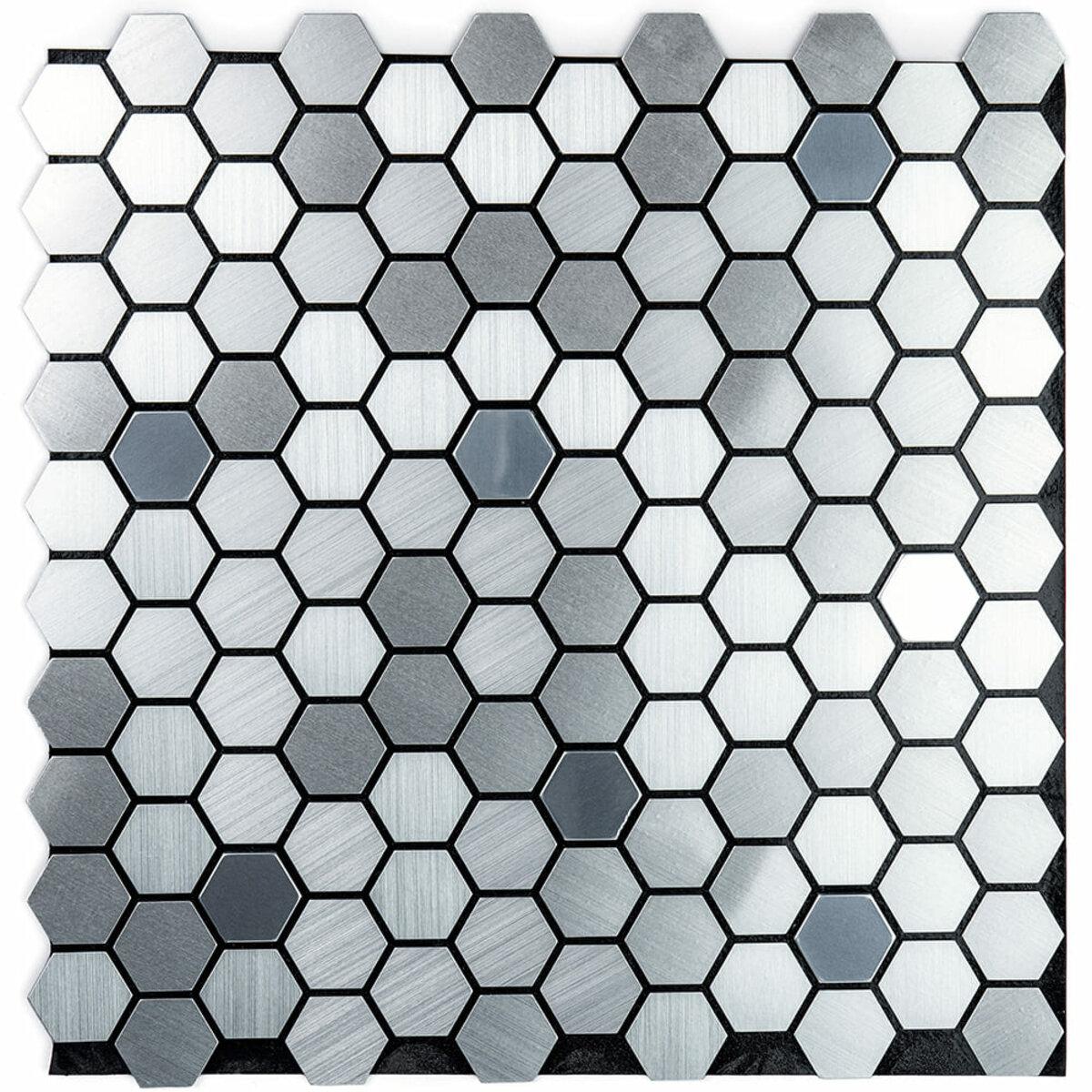 Самоклеющаяся алюминиевая плитка 300х300х3мм Серебряная мозаика з зеркальными вставками SW-00001928