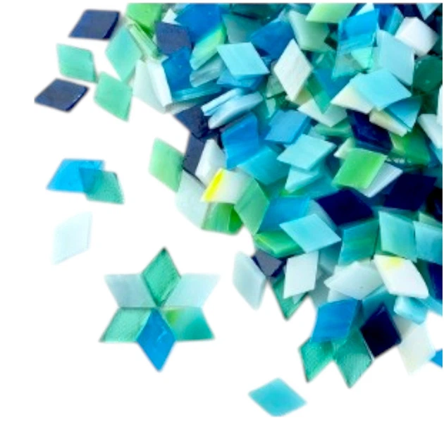 Набір шматочків мозаїки слюда форма РОМБ 200 грам 340 шт колір Синій та білий змішаний (3382)