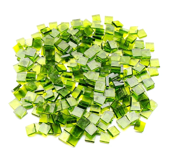 Набір шматочків мозаїки слюда форма квадрат 200 г 1*1 см 280 штук колір Зелений напівпрозорий (3613)