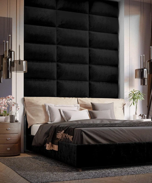 М'яка велюрова стінова панель чотирьохкутник оксамитове узголів'я ліжка Чорна 30*40*4см