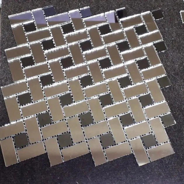 Мозаїка дзеркальна DecorStoneHub Zs-mrm-G сріблясто-графітовий 302х302 мм кошикова плетінка для кафе (004186)