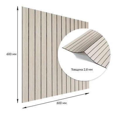 Покриття вінілове самоклеюче 3D рейки 600х600х2,8 мм декоративне настінне з ефектом дерева