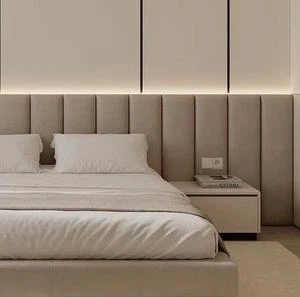 М'яка велюрова стінова панель прямокутна оксамитове узголів'я ліжка Бежева 15*70*4 см