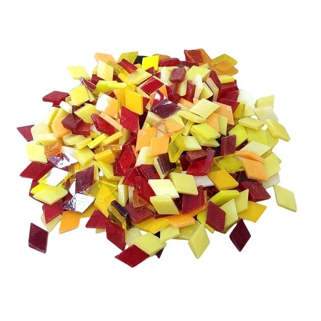 Набір шматочків мозаїки слюда форма РОМБ 200 г 340 шт колір Червоний Помаранчевий Жовтий Мікс не прозорий (7944)