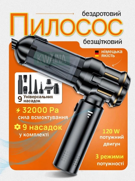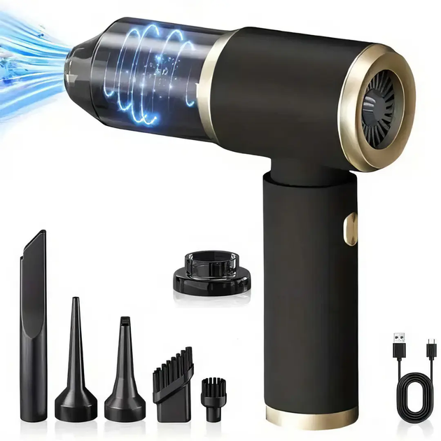 Пилосос автомобільний портативний акумуляторний з функцією видування, USB-зарядкою та насадками, потужний бездротовий, 120 В