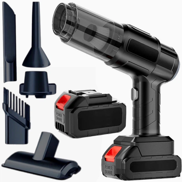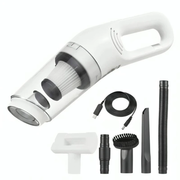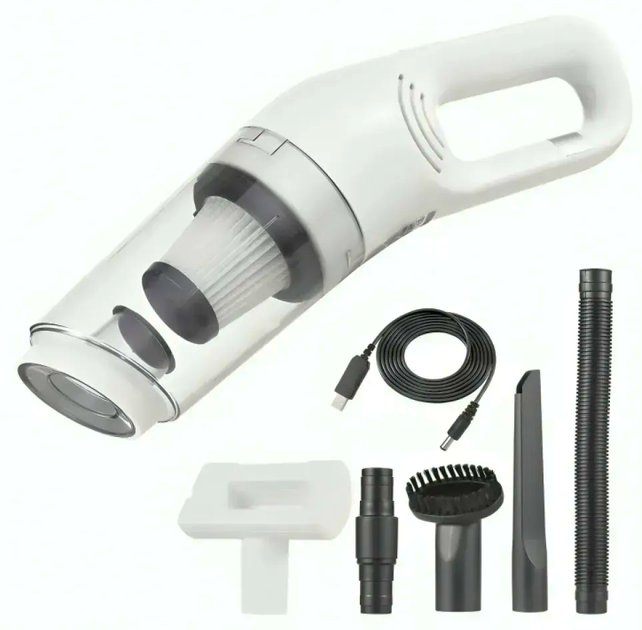 Автомобільний пилосос 120Вт акумуляторний з USB та 5 насадками для швидкого прибирання в машині