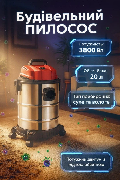 Промисловий пилосос Rainberg Серія RB Модель 2277 3800W Нержавійка 20л Артикул RB-2277