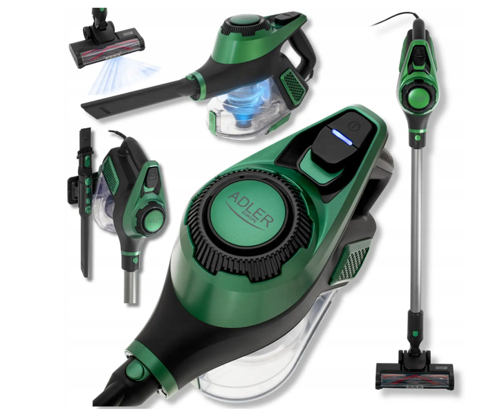 Вертикальний пілосос Adler AD 7083, зелений - 700 Вт, 15 000 Па, HEPA 13, контейнер 0,8 л, електрощітка з LED-підсвіткою
