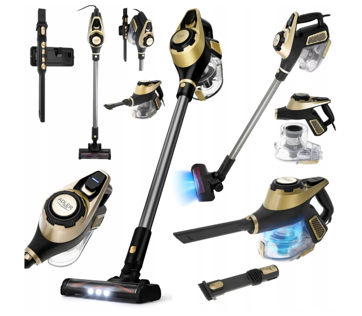 Вертикальний пілосос Adler AD 7083, золотий - 700 Вт, 15 000 Па, HEPA 13, контейнер 0,8 л, електрощітка з LED-підсвіткою
