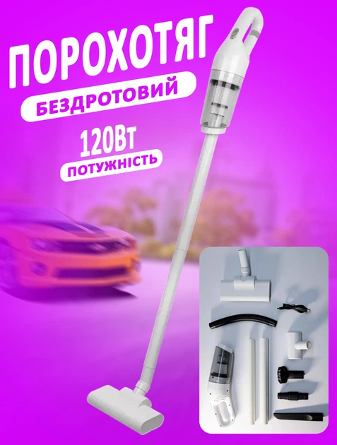 Автомобільний акумуляторний пилосос A-Plus A168 2000 mAh, 120 Вт, бездротовий Білий