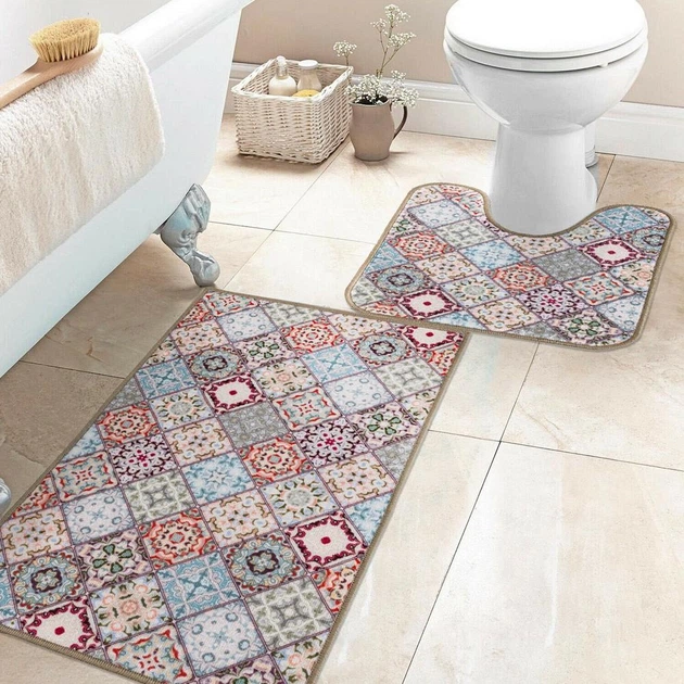 Килимки набір для ванної кімнати туалету комплект килимків у ванну кімнату протиковзкий безворсовий еластичний з мийною пове