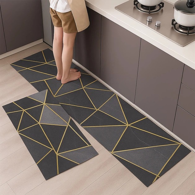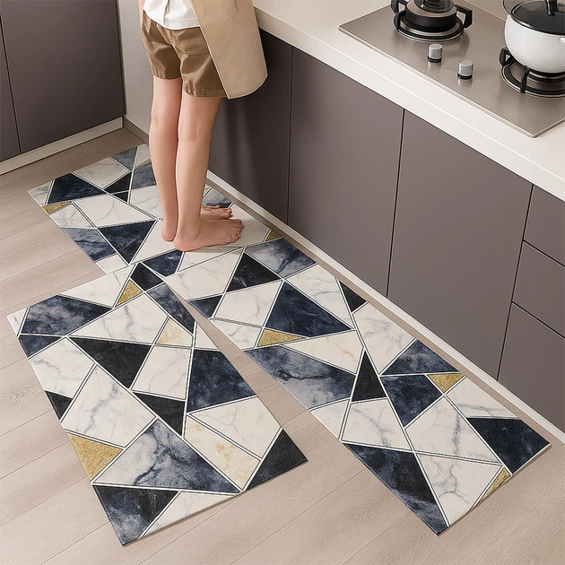 Набір килимків для кухні та ванної 12040 см і 6040 см водонепроникні, протиковзні, м'які, декоративні Мармурова Геометрія