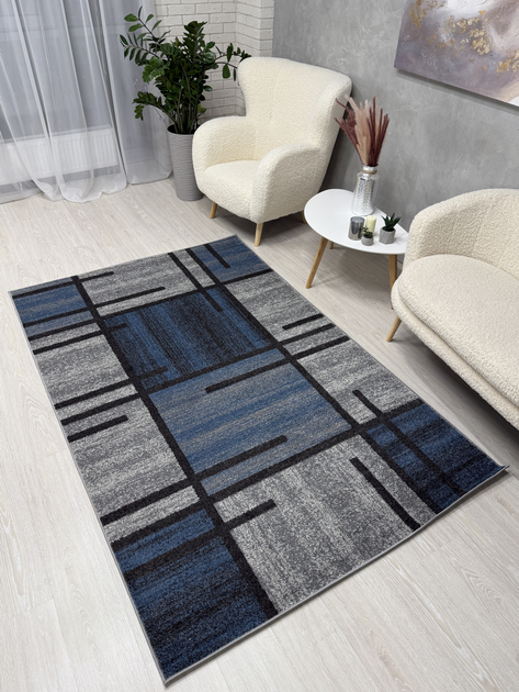 Килим з невисоким ворсом Presco 0.8х5 м. Сірий с синім PR02239A