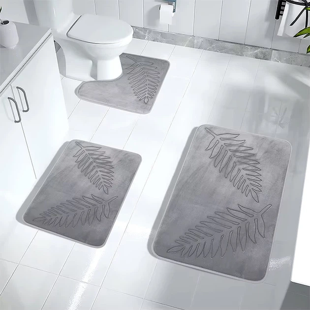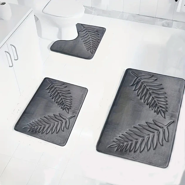 Набір із 3-х килимків для ванної та туалету «Листя» з ефектом пам'яті Антиковзаючий Сірий (7802281)