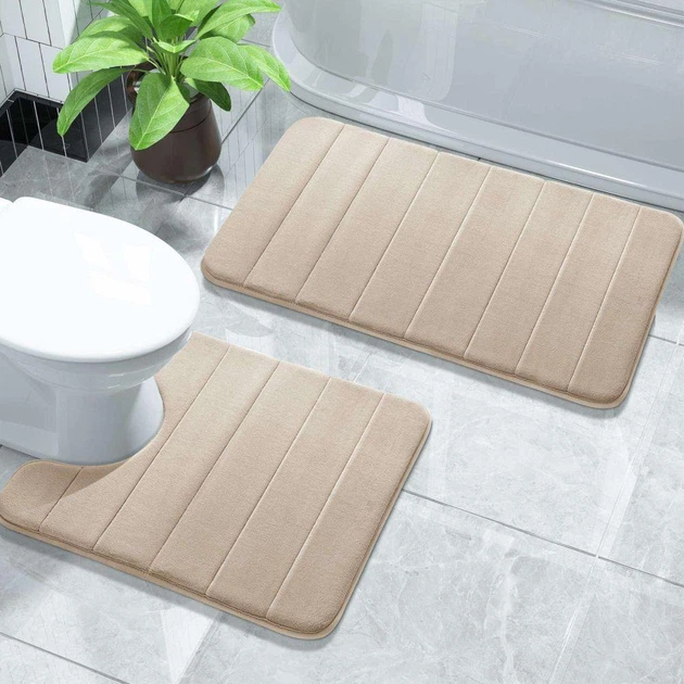 Набір 2 килимки для ванної Aquarius з ефектом пам'яті 50х80 см, U-подібний 50х50 см Бежевий у смужку