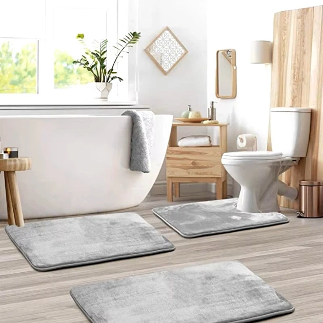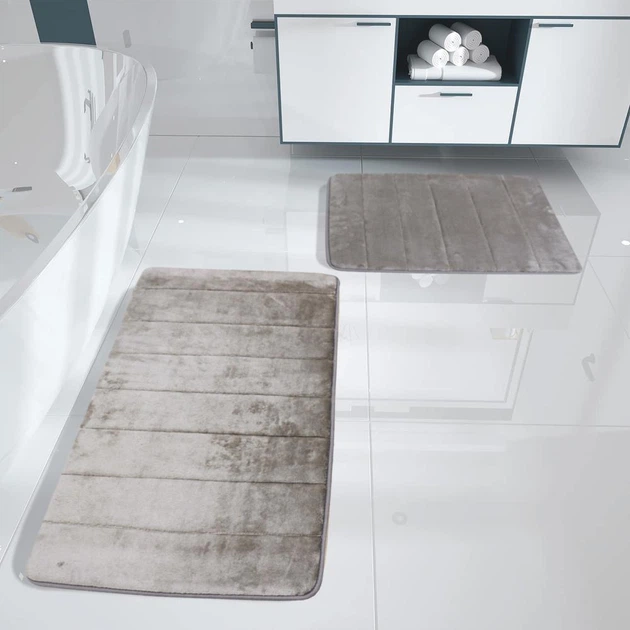 Набір із 3-х килимків для ванної «VELVET» з Ефектом пам'яті 50х80, 40х60 і U-подібний 50х50 см Світло-сірий (8802315)