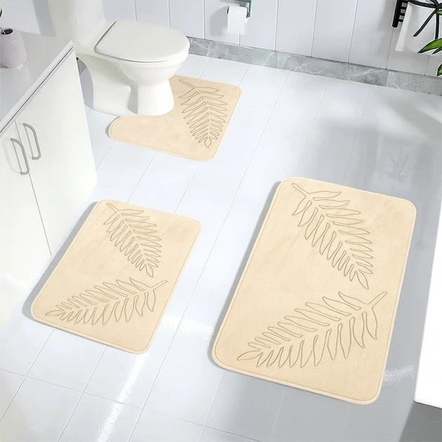 Набір із 3-х килимків для ванної та туалету «Листя» з ефектом пам'яті Антиковзаючий Бежевий (7802800)