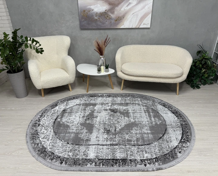 Килим з невисоким ворсом Mars 1.5х3 м. Овал Сірий 2701B K.GRI / A.GRI