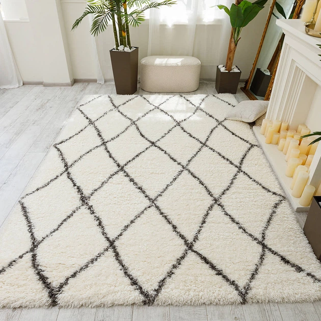 Килимок сучасний QUATTRO 3508A 1.2 x 1.8 м. Білий з темно-сірим прямокутником