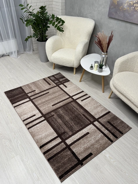 Килим з невисоким ворсом Presco 1.5х3.5 м. Коричневий с бежевим PR02239A