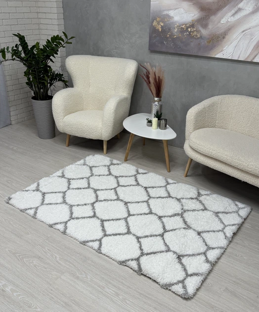 Килим з високим ворсом Loca 6365A white-cream овал 1.60x2.30