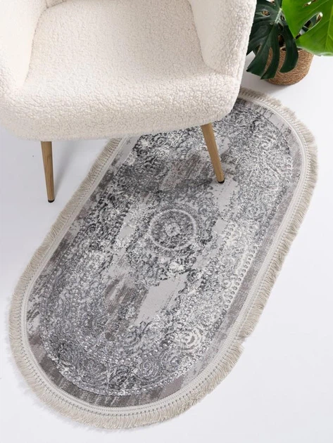 Прикроватний коврик Levado 03710a 150х230 см сучасний сірий овальний килимок в спальню до ліжка