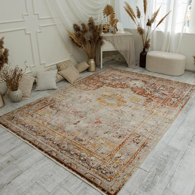 Килим вінтаж SEVEN DAYS 0708A 1.85 x 1.33 м. Бежевий з сірим прямокутник
