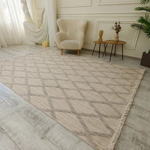 Килим сучасний AGRA EN76A 2 x 2.9м. Білий з бежевим прямокутник