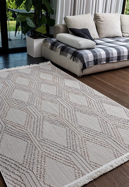 Безворсовий килим Agra EN76A white-beige 2.40x3.40