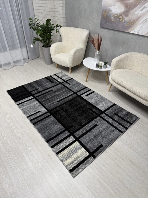 Килим з невисоким ворсом Presco 1.5х4.5 м. Сірий з чорним PR02239A