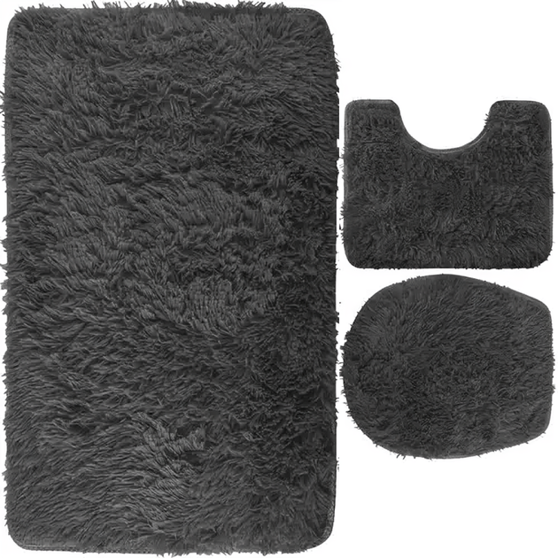 Комплект набір килимків із чохлом на сидіння протиковзкою основою для ванної туалету 3 штуки (481253-Prob) Сірий