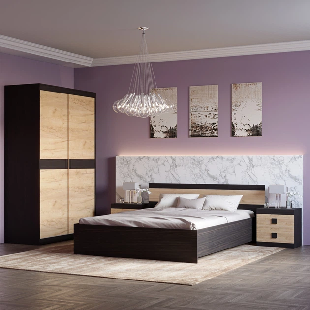 Спальня Соната Еверест Комплект 11 (модульна - 4 елементи) венге темний + дуб крафт золотий (DTM-2641)