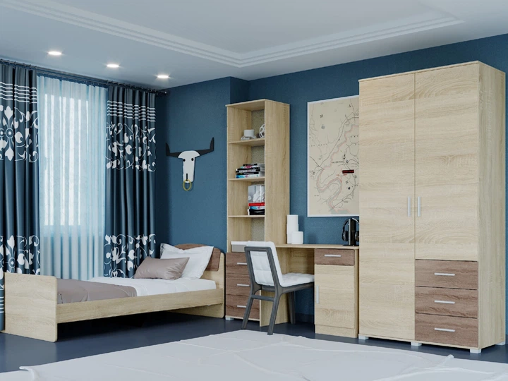 Спальня дитяча Бриз 11 (комплект) 3250*950*1880 з ДСП ламінованого колір Дуб Сонома/Трюфель Everest