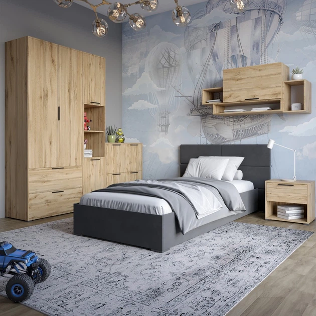 Гарнітур в спальню LION Краш Дуб аппалачі/Антрацит з 6 елементів (LION-044209)