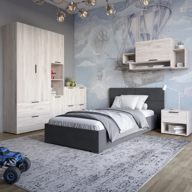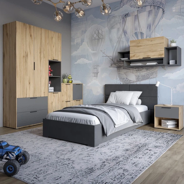 Гарнітур в спальню LION Краш Дуб аппалачі/Антрацит з 6 елементів (LION-044209)