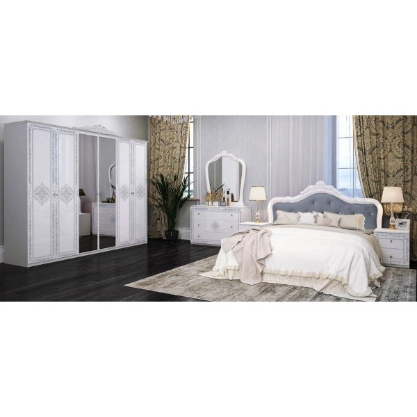 Спальний гарнітур Луїза 2 MiroMark білий глянець (Ламінована ДСП) (двоспальне ліжко 160x200/тумби/шафа 6Д/комод 3Ш/дзеркало/