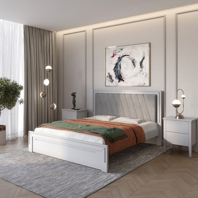 Односпальне дерев'яне ліжко Mebigrand Торонто Т4 Айворі (S0505Y30R)/Аляска 93 (сірий) 80х200 см (MBG-8988)