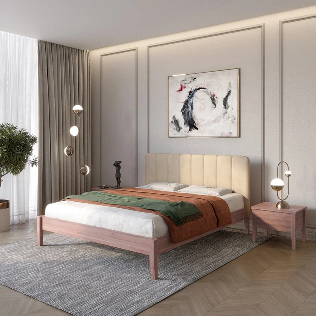 Односпальне дерев'яне ліжко Mebigrand Венеція ДК Вільха/Аляска 23 (Бежевий) 90х200 см (MBG-5694)