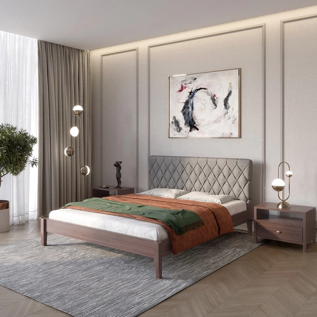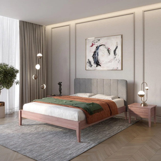 Односпальне дерев'яне ліжко Mebigrand Лондон ДК Горіх лісовий/Аляска 93 (Сірий) Б1 90х200 см (MBG-6772)